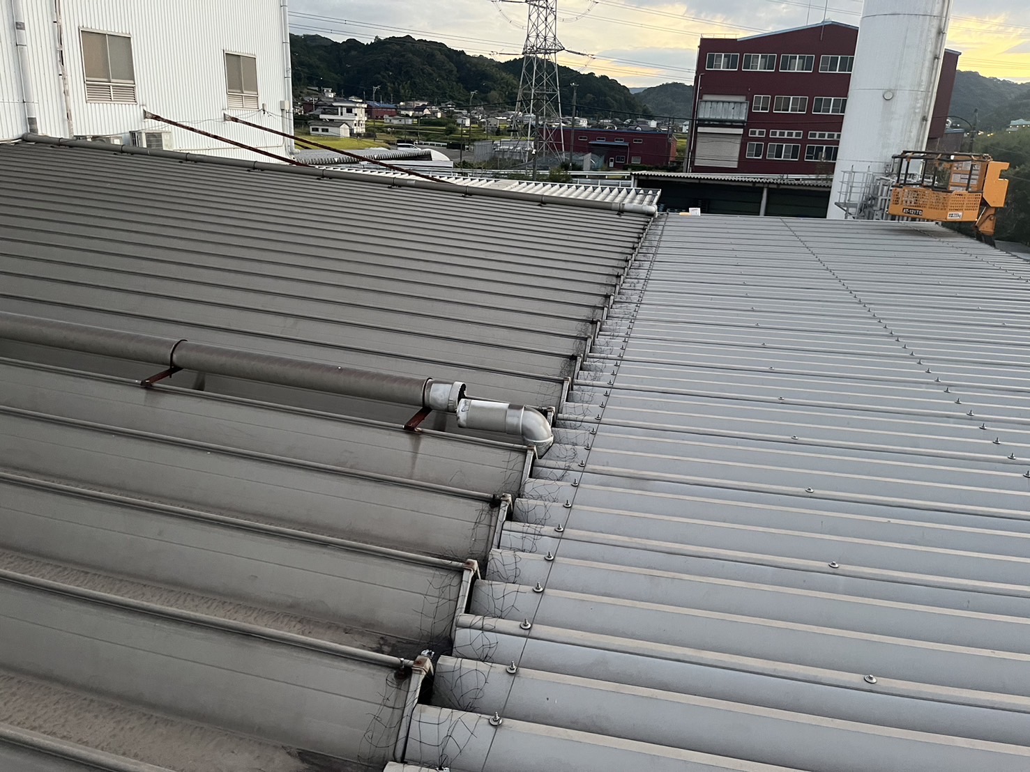 防鳥ネットの取付を行い、ハトがとまる場所をネットで覆い、屋根上から入ってくる隙間を塞ぎました。